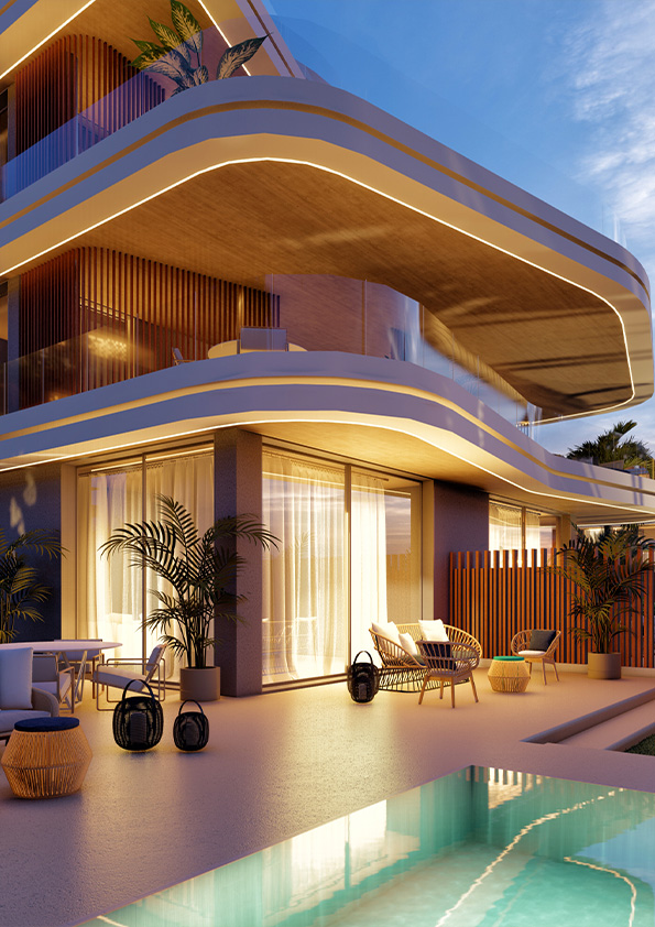 first luxury hotel on the island of Ibiza, a pioneering concept throughout the island, developing a tourism